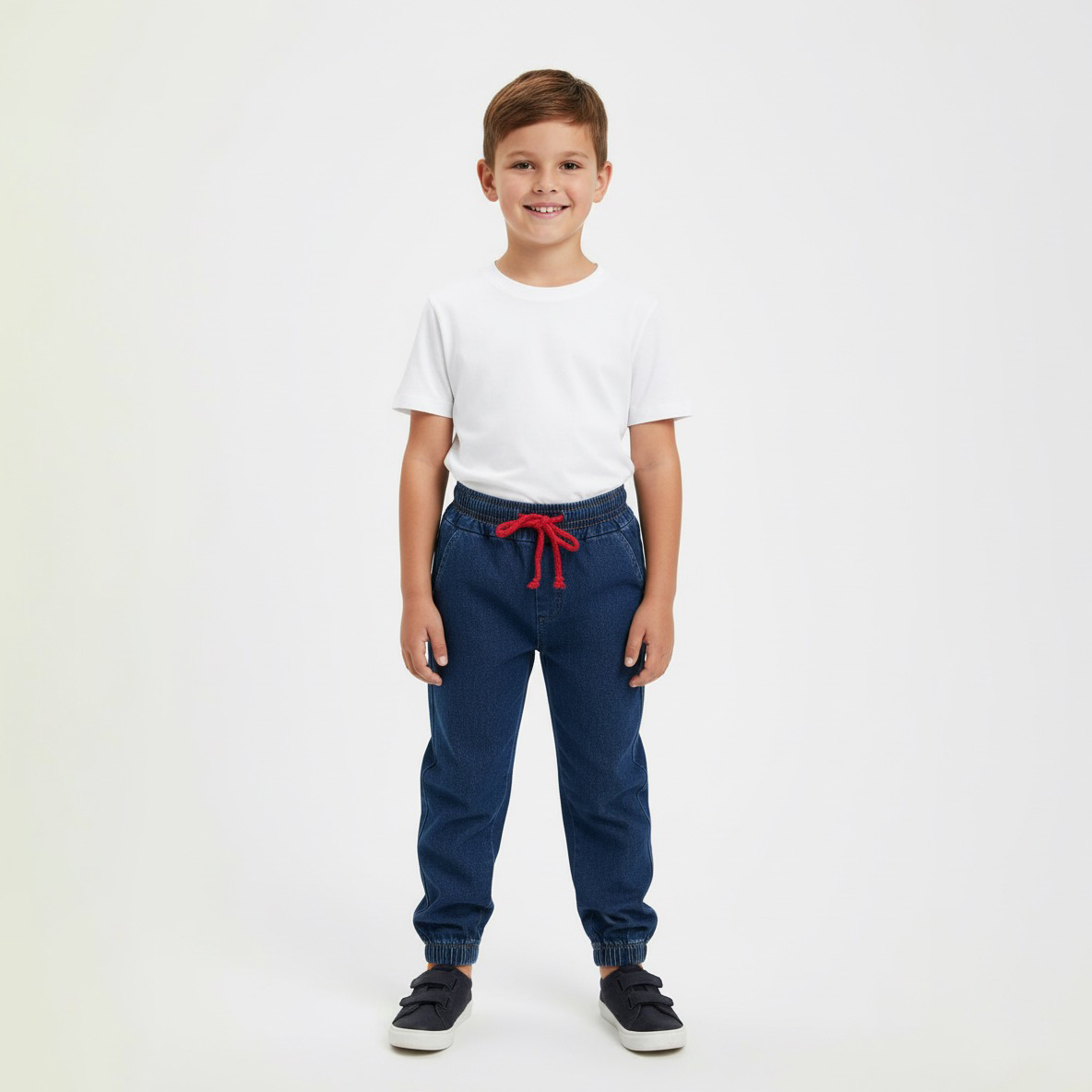 A jogger jeans reúne estilo e conforto, garantindo liberdade de movimento com um visual atual que agrada pais e crianças. Perfeita para compor looks casuais e versáteis — ideal para revendedores que querem produtos de alta aceitação e excelente giro.