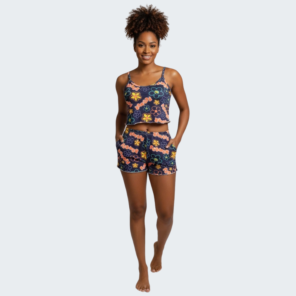 Conjunto em suede estampado que agrega estilo e destaque ao expositor da loja. Peça diferenciada com ótimo valor percebido, ideal para lojistas que buscam novidades no mix e produtos com excelente potencial de venda.
